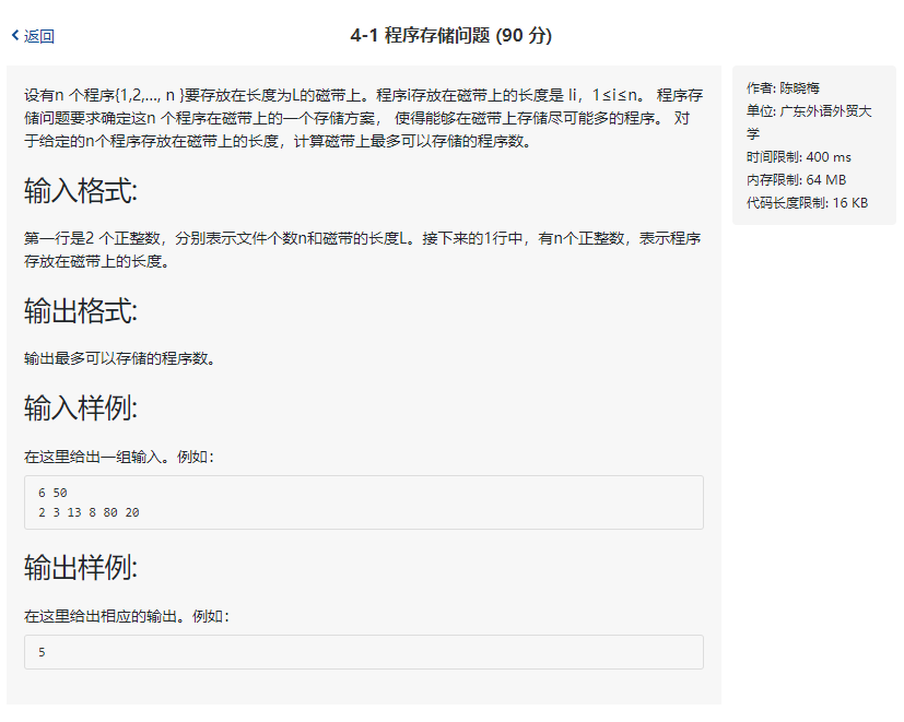 題意是,題干給定磁盤總容量和各個文件的佔用空間,詢問該磁盤最多能裝幾個文件。