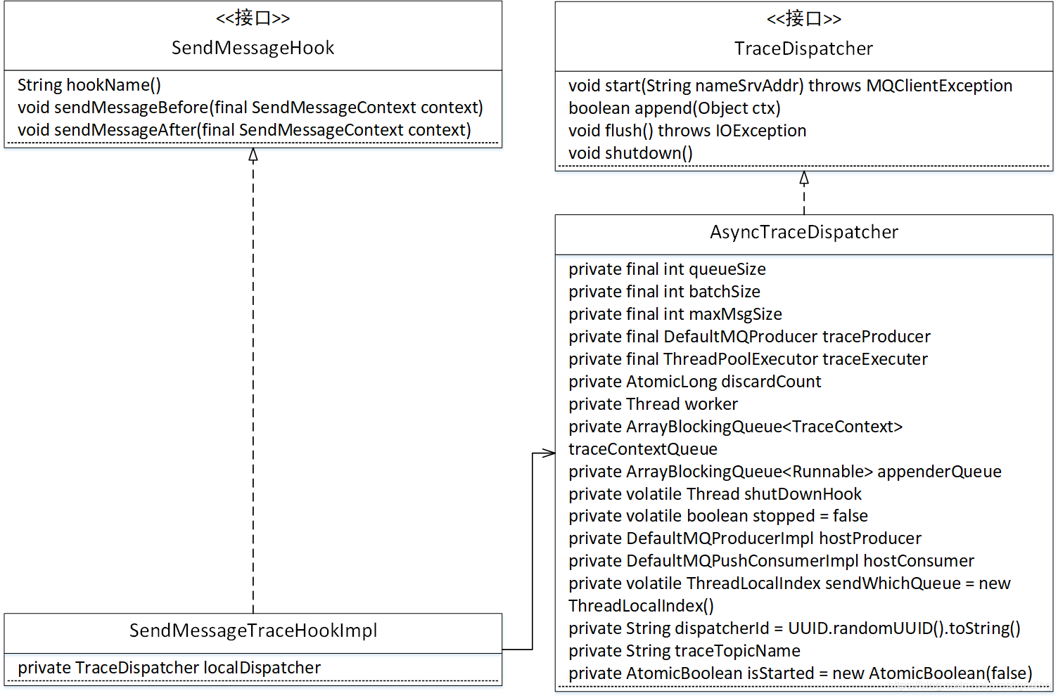 AsyncTraceDispatcher dispatcher = new AsyncTraceDispatcher(customizedTraceTopic, rpcHook);