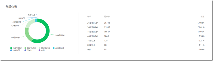 從訂閱年齡看,高達99%的人落在18歲到60歲的區間且分佈正態,這正是我國勞動人口的年齡, 25歲以下只有20%,所以訂閱並不是以大學生為主,這也反映了現在高校中.NET 的教學比較少或者還是以.NET Framework的老舊內容;60歲以上極少,而所謂的“大專家”群體落在這個區間。